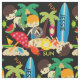 Cute, fun, colourful, great for kids or anyone who loves the beach, features a black background with beach theme, kids at the beach with swim tubes, surfboards, beach umbrella, watermelon, sunscreen, toy boats, there's even some crabs running around! You can add a name easily to the surfboard!