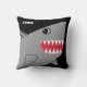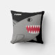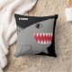 Personalised Fun Grey Shark on black pillow. Edit to change background colour or font colour. Grey shark with sharp teeth and name on pillow. Personalise with your child's name in white font. Design and name is printed on both sides of pillow. Perfect for your child's shark themed bedroom decor or a fun pillow for playroom. This cute killer shark is ready to swim in an underwater themed little kids room.
