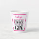 This regular sized latte mug has the text: "Might be Coffee. Might be Gin" and can be personalised with your name. Use it in the office to tease your friends. The style is simple and modern, in shocking pink and black on a white mug.