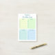 This practical, clean looking, personalised, notepad with four coloured categories with lines to write on and boxes to check off would be great for helping you organise your daily tasks. It's soft pastel colours are yellow, green, aqua, and blue and the modern, clean fonts are in teal. Get some for yourself and some for friends and loved ones. Because who can't use a little help staying organised and on task every day?