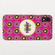 This hot pink cell case cover has a colourful pattern of circles, circles, and more circles in bright yellow, orange, green, purple, blue, and navy. Customise the white and yellow circle with your name, initials, monogram, or other wording. Make the circle and name as big or little as you like, or remove it completely.