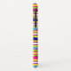 This cell case cover has a colourful pattern of triangles and horizontal stripes in bright yellow, green, pink, blue, burgundy, white, and navy. Customise the white and hot pink circle with your name, initials, monogram, or other wording. Make the circle and name as big or little as you like, or remove it completely.