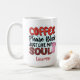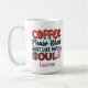 Funny coffee mug for women or men who love coffee. Great personalised gift for co workers who love caffeine quotes. If there is a coffee addict in your office , why not humour him or her with this cute saying. Colourful and stylish for your office staff.