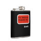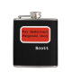 Tongue in cheek flask reads For Medicinal Purposes Only in black typewritten look letters on a red and white label on black look. White letters underneath to add name for a fun personalised booze gift. Looks like medicine bottle or prescription label. Personalise however you like by adding your own text, etc. Visit our online Zazzle shop for lots of other funny booze and alcoholic theme designs. Fun gift for the groom or wedding party gift.