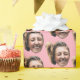 A funny personalised wrapping paper with your custom face photo. This custom face wrapping paper design is a beautiful way to personalised your gifts and presents. Funny and cute custom face wrapping paper with pink background. Customise the face and make your own funny face wrapping paper.