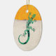 This holiday Christmas tree ornament features a green tribal print gecko or lizard. It is on a natural stone and stucco style background. It can be personalised with a name, year or any text that you wish to add.