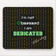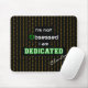 This black background mousepad has a binary-inspired pattern of repeating 0's and 1's in orange, and the quote "I'm not obsessed I am DEDICATED" in the centre. The O of Obsessed is styled to resemble a green computer power button. There is also a personalisation option - enter the name, initials, or text of your choosing, which appears in white script (or delete this if not required).