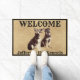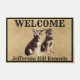 Two cute German shepherd puppies pose for a picture on this fun mat which is perfect for breeders, kennels or dog lovers. The text is easily changed.