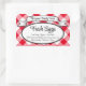 Personalised Egg Carton Label, with a super cute red white farmhouse style gingham check background and your name in a waving banner. Great for farm fresh eggs, Customisable with your farm, egg details, phone number or any other details. Great for free range, farm fresh, organic, hand gathered chicken coop hen eggs. Also customise the background colour by (after entering your information), click "customise it", then "edit" and "background".