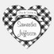 Heart shaped. Add a cute and Fun personal touch to your kitchen cooking, home canning or small business products. Customise this retro style label sticker with your own text. Features adorable plaid check gingham background in black and white with ribbon like label text, much like a name brand product. Great for baked goods, cupcakes, food gift tag labels, home Mede goodies or business.