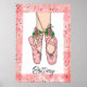 Pretty hand drawn pink ballerina shoes with roses and flowers girl’s wall art poster.