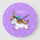 Personalised Girls Purple Unicorn Large Clock