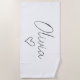 Make a splash with this chic personalised girly beach towel featuring your name and a charming heart design. Perfect for lounging at the beach, poolside, or adding a stylish touch to your summer adventures, this towel combines practicality with personality. Made from soft, absorbent material, it’s both functional and fashionable. A great gift idea for birthdays, vacations, or anyone who loves feminine and trendy accessories.