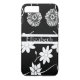 Personalised Girly Black & White Floral With Name Case-Mate iPhone Case