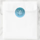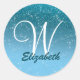 Personalised Girly Blue Glitter Sparkles Monogram Classic Round Sticker