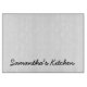 Personalised glass cutting board with custom text, name or monogram. Cute gift idea for kitchen or restuarant.