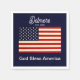 Enhance your patriotic gatherings with our personalised "God Bless America" flag paper napkins. These festive napkins feature a bold American flag design against a deep navy background, accompanied by the inspiring phrase "God Bless America." They are fully customisable, allowing you to add your own family name and a significant year, creating a unique touch for your event. Perfect for Fourth of July barbecues, family reunions, military support events, or any celebration of national pride, these disposable napkins combine convenience with a heartfelt message. Elevate your table setting and make your special occasions memorable.