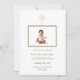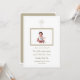 Celebrate your child's First Holy Communion with this elegant and customisable invitation. The design features a gold-accented cross at the top, symbolising faith, and a central framed photo of your little one, making the card truly personal. The white background and refined gold text lend a clean and sophisticated look, while the blend of script and serif fonts adds a classic touch. Perfect for creating a cherished memory of this special occasion.
