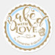 A cute homemade baking label. This baked with love sticker is perfect for homemade baked goods, handmade presents, business products, or personalised gifts. Customise it with your name.
