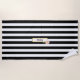Chic personalised black and white striped beach towel featuring a pretty nameplate in black script encased in a gold border with a summer peach rose in the corner. You can personalise the name in an elegant text and change the colours making it a perfect treat for yourself or as a special gift to a friend or family member.