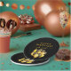 Personalise your birthday party paper cups with your name in a script signature typography with modern gold and black balloons on black paper plates. Celebrate with modern festive style personalised party supplies.