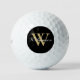 Minimalist elegant simple gold and black script custom monogram initial, letter and name, or last name, family name personalised Titleist Pro V1 Golf Balls, available in many brand options