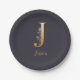 Personalised Gold Blue Elegant Floral Monogram J Paper Plate