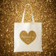 Personalised gold glitter love heart tote bag. Cute faux golden glittery heart design tote bag for women and girls. Elegant typography for custom text, monogram or name. Stylish print for the ladies of team bride ; bride, bridesmaids, flower girl, maid of honour. Make your own for the bachelorette, wedding party or bridal shower. Sparkly design with fake glimmers and sparkles.