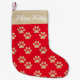This beautiful Christmas stocking features a faux gold glitter paw prints pattern and ability to add a custom name for your dog or cat on the top part of the stocking!