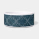 This ceramic dog food bowl has a navy blue floral damask pattern in the background. In the middle, there is a large sparkly silver and gold bone with an easily customised name of your doggie written in navy blue.