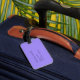 Personalised Gold Trim Violet Stripes Luggage Tag