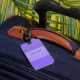 Personalised Gold Trim Violet Stripes Luggage Tag