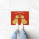 Personalised Christmas Goldendoodles kissing under Mistletoe - red burlap background - cute goldendoodle lover christmas doormat!