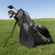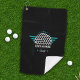 Perfect for dads, retirees or anyone who loves golf, this personalised golf towel in rich black with turquoise accents features a golf ball logo that can be customised with his name.