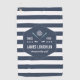 Perfect for dads, retirees or anyone who loves golf, this personalised golf towel in rich navy blue and white stripes features a golf ball & clubs logo that can be customised with his name, birth year, retirement year or special year.