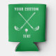 Personalised Golf Pun Can Cooler. Just about any colour, type and different colour font for text, upload images, photo. Customise and personalised the featured can cooler with cross golf clubs and a golf ball on a tee or create your own Custom Personalised Beer Can Cooler,party Favours for golf events, golf lovers Wedding, Wedding shower, bridal shower, Bachelor party, Bachelorette party, Family reunions and more. Ideal personal casual use or for your golf friend the enjoyment of a frosty drink and dry hands with this 12-ounce can cooler. Available in any colour with the option to customise the golf pun, meme or joke. Get one or a dozen with same or different text - it's an affordable and fun gift for anyone on your gift list.