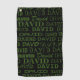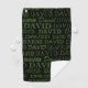 Personalised golf towel gift with cool name print. Personalised sports gift for him or her. Trendy golfing gifts for men and women. Fun typography template design with black background. Unique Father's Day, Christmas and Birthday gift ideas for golf player, golfer, husband, best dad, father, friend, co worker, boss, colleague, coach, instructor, trainer, teacher, grandpa, retired person, golf lover etc. Add your own surname or first name. Including hook to hang it up. Unique golf accessories for friends and family.