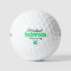 Custom golfball for a stylish golfplayer... simple and modern design... first name in black script font style, and last name printed in bold green font... a good suggestion for a birthday gift, as it has the editable number 42, and can also be replaced with his initials (MT)... nice idea for husband, dad, grandpa, brother...
