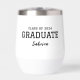 This modern stylish graduation thermal wine tumbler glass is perfect for school, and university graduation announcements or parties. features a favourite photo, names of high schools, and class of 2024.