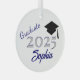 Celebrate a high school or college graduation with this personalised keepsake ornament. Original design by Night Owl's Menagerie, 2023.