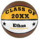 Personalised graduation gift for any year graduating class as you can easily customise the graduation year. Also personalise with your grad's name and school name. An ideal gift for grads who love to shoot hoops and play basketball or even to give to school alumni for college and school class reunions! Yellow gold school colour. Created by © Lesruba Designs. Please email me directly for custom colours or other requests: info (at) lesrubadesigns (dot) com or click on the chat bubble icon to the left of the cart symbol at the top of any Zazzle page to send me a message instantly.