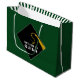 Graduation gift bag featuring classic black and gold cap on a green background. Edit text to add senior grad's name.