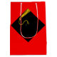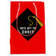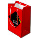 Graduation gift bag featuring grad cap design on a red background. Edit text to add grad's name.