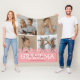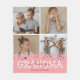 Personalised grandmother winter fleecy blanket featuring a 4 photo collage of the grandkids, a cute pink heart design, the saying "we love you grandma", and the childrens names.