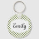 Cute personalised white keychain with olive green polka dots. Add your name or initials / monogram to make it your own.