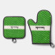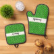 Pretty green and white dot design on this oven mitt and pot holder set. Personalise with your name or the couple's names.