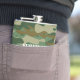 Personalised green army camouflage drink hip flask gift. Hunter camo colour print with custom text, name or quote. Army / military / hunting theme. Cool prop gift idea for dad, husband, brother, friend, boss, colleague, soldier, groom, father, uncle, grandpa etc. Funny present for him. Great for Birthday, wedding party, Christmas etc. Add your own name or funny quote.