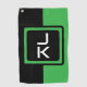 Personalised golf towel is a fun way to express yourself while playing golf. Green and black design offers a modern and sleek look. You can choose your own letters. Add your monogram. Use the template to create your own personalised golf towel.