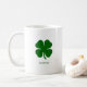 Simple Irish Four Leaf Clover Emerald Green Shamrock Design - Customise it with your own personalised names, words, colours! Celebrate good luck in style with this personalised Four Leaf Clover Design! Featuring a minimalist design with a simple yet modern touch, this mug can be customised with or without your name or favourite word. The vibrant emerald green colour adds a fresh and bold look, while the elegant typography brings a sense of charm and uniqueness. Choose your preferred background colour or leave it as is to keep the focus on the lucky clover. Whether you’re gifting it to a loved one or treating yourself, this mug makes every sip feel a little luckier!