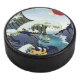 Personalised Green Dragon Blue Wave Red Sun Hockey Puck